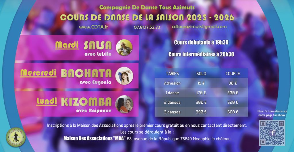 Les cours de danse reprennent aux dates suivantes à la Maison des Association de Neauphle le Château :